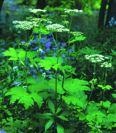 rich woods, wooded roadside banks, marshy flats, streambanks, ditches