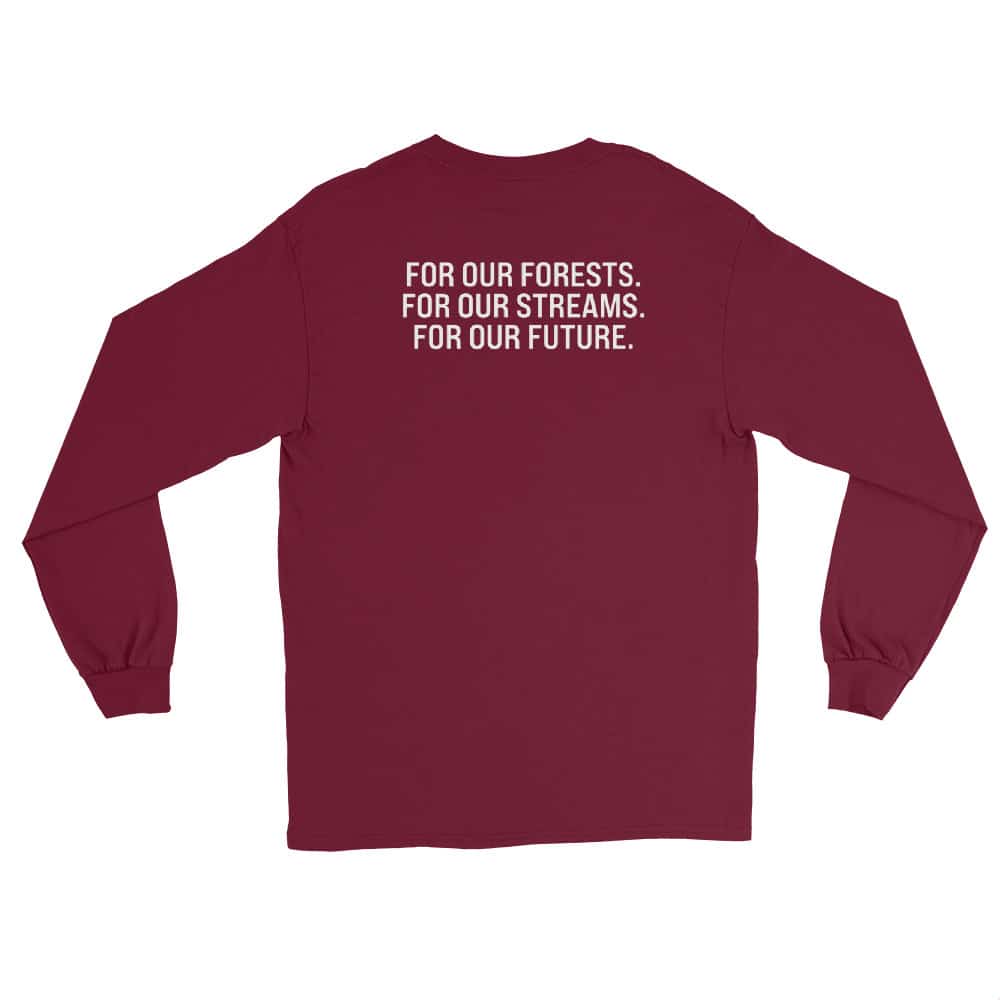 This comfortable long-sleeve t-shirt features the Alliance’s horizontal logo on both the front and inspirational “For our forests. For our streams. For our future.” phrase on the back. Grab this tee and show it off at your next volunteer event, community meeting, or virtual gathering.